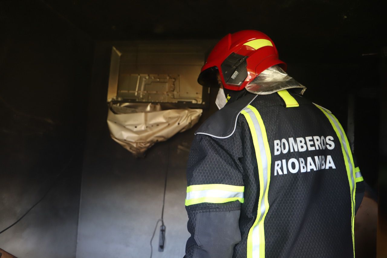 Para lo cual uniformados del Cuerpo de Bomberos Riobamba acudieron hasta el lugar, y con la aplicación de técnicas y tácticas de control de incendios lograron controlar el flagelo, así lo manifestó el bombero Sebastián Cujilema, mismo que señaló que el incendio se registró en una de las habitación de la vivienda, no se reportaron heridos únicamente pérdidas materiales como: televisor, armario, ropa y enceres de dormitorio.