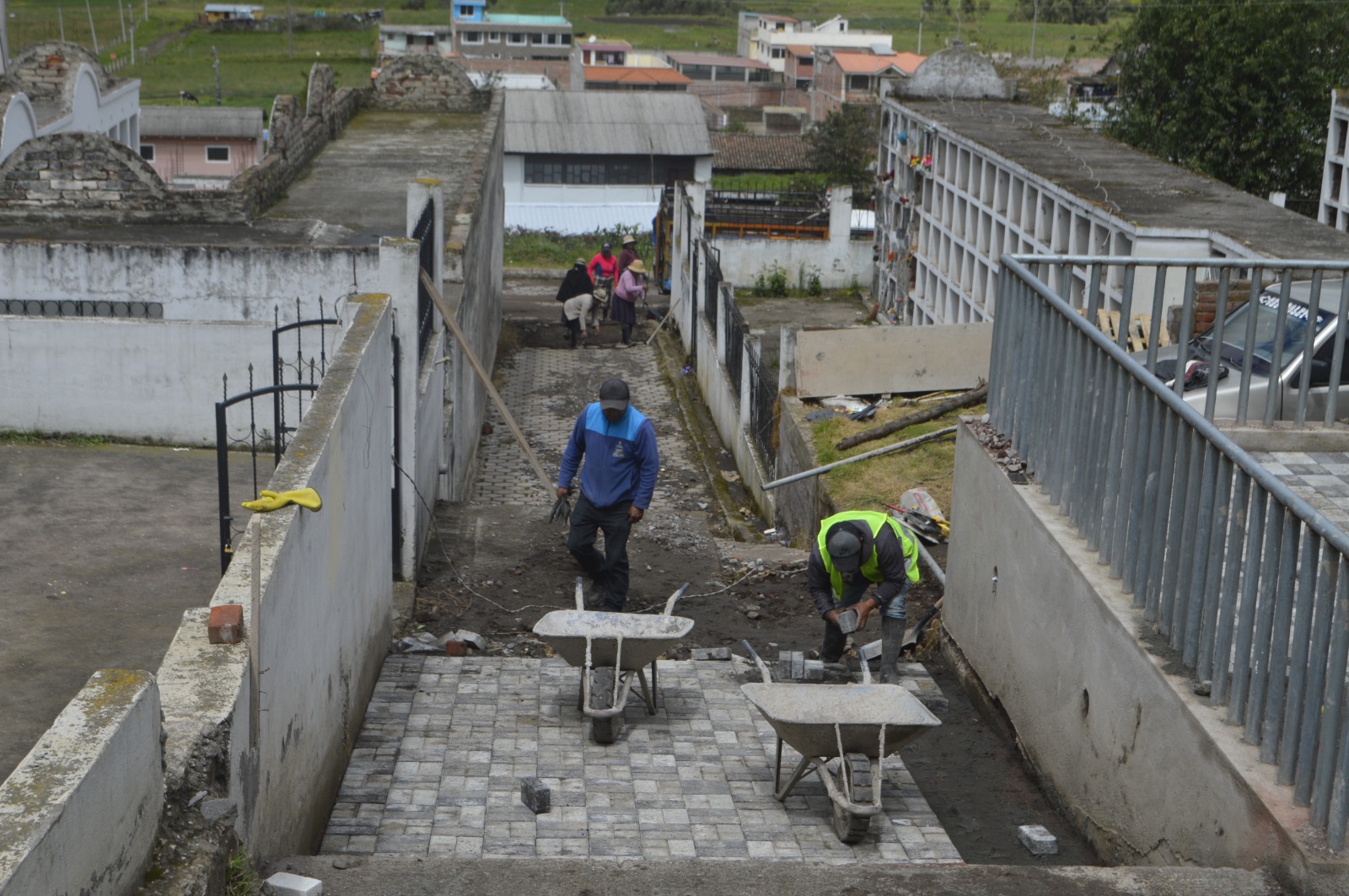 La obra al momento registra un avance del 93%, la intervención se realiza en un área de 20,63 m² que corresponden a dos cuerpos de bóvedas de 50 cada uno y en 282 m2 de caminerías, estos trabajos van en beneficio de los 8 mil habitantes de los seis barrios de la cabecera parroquial y de sus 26 comunidades.