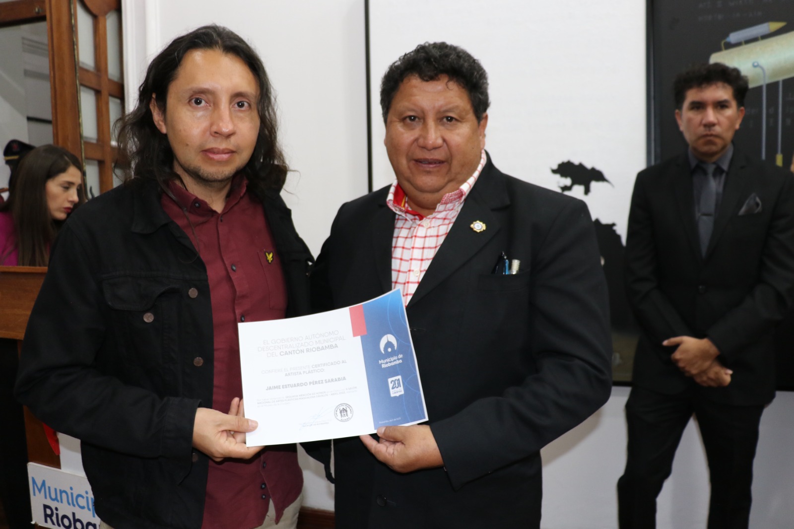 Los cheques simbólicos a los ganadores y las menciones de honor fueron entregados por la Ing. Carla Castillo, Administradora del Museo de la Ciudad, Lic. Pablo Luis Narváez, director de Gestión de Cultural, Deportes y Recreación y el Arq. Jaime López, concejal del Cantón Riobamba.