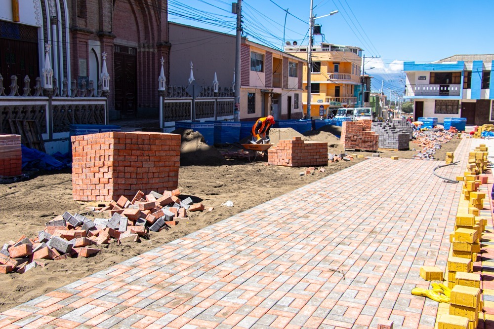 Una vez finalizado el derrocamiento de las aceras y bordillos, ensanchamiento de aceras, se ha iniciado la colocación de adoquines ornamentales, según informa el contratista, la obra entra en su etapa final que consiste en la iluminación tipo lead en el parque e iglesia, adoquín podotáctil, bordillos tipo canaleta, colocación de bancas de piedra, bolardos; además, agradece a la ciudadanos de Calpi: “Han sido muy agradables, muy acogedores, con el antiguo presidente y el actual nos han brindado todas las facilidades”.