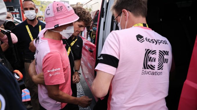 El jefe de filas del EF llegaba con la intención de pelear por la general, pero apenas pudo ganar la meta 15 minutos más tarde que los favoritos, lo que tiraba por tierra todas sus opciones de acabar arriba en la carrera.
