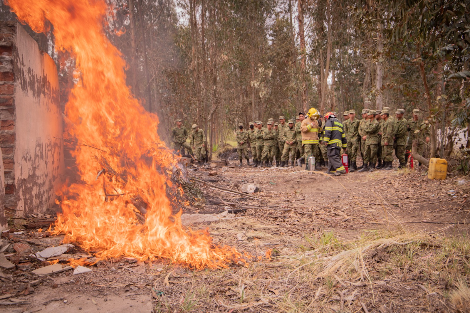 Durante el tercer día de capacitación, se realizó una práctica con fuego real controlado, con el fin de utilizar y conocer sobre las herramientas de zapa que los miembros de la casaca roja utilizan al momento de sofocar un flagelo de este tipo.