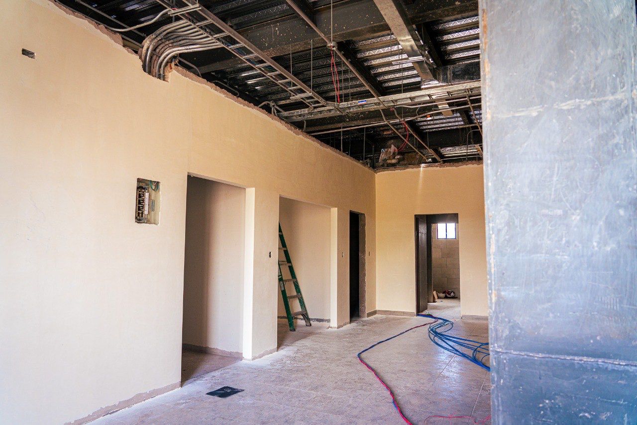 David Carrasco, el contratista a cargo de la obra, informa que en esta etapa se están realizando trabajos de acabado, como la colocación de cielorrasos, la implementación de pasamanos, la pintura, la instalación del ascensor, la construcción de la planta de tratamiento, parqueaderos y la adecuación de la fachada.