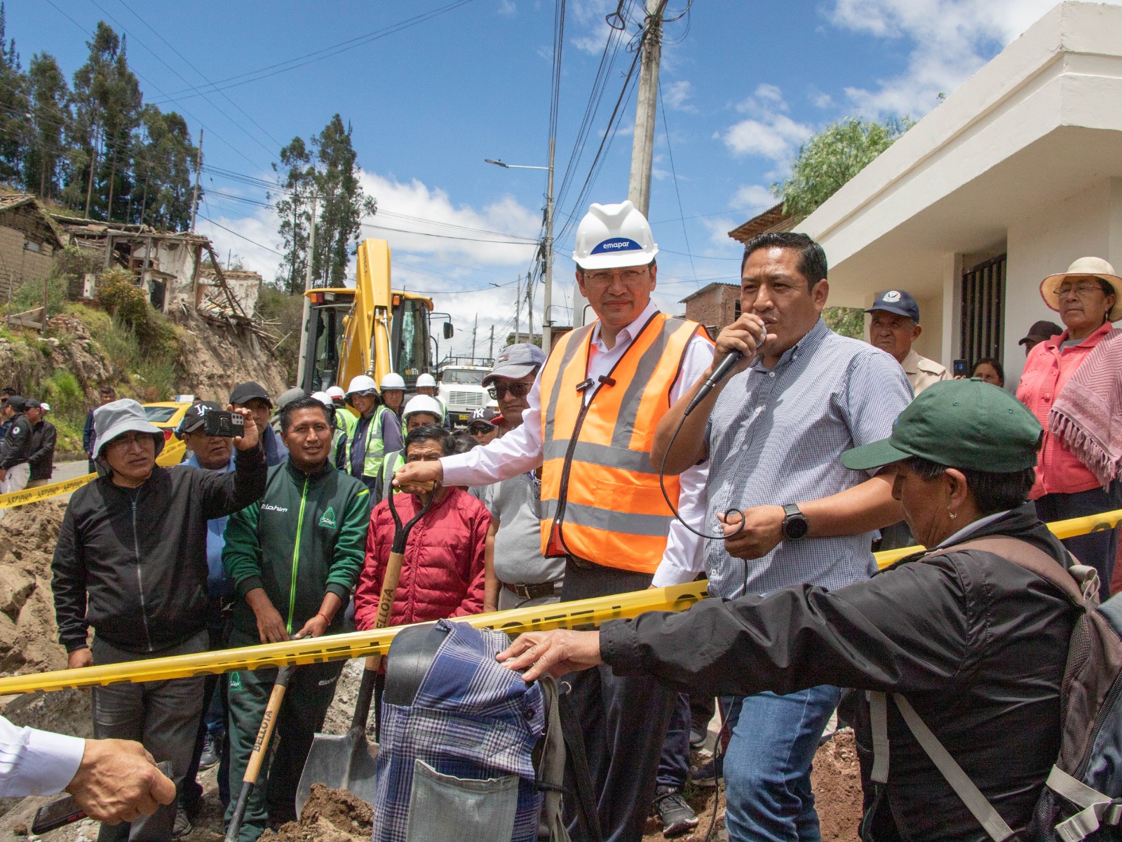 Ángel Víctor Ushiña, presidente del barrio La Libertad, expresó su emoción: "Esta obra estuvo detenida por mucho tiempo, pero hoy es una oportunidad para todos. La gente está presente aquí con una alegría enorme porque se va a cumplir".