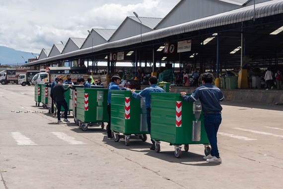 El Municipio de Riobamba realizó la entrega de 62 contenedores para la separación de basura en el Mercado Mayorista. De estos, 12 están destinados para residuos inorgánicos y 50 para residuos orgánicos.
