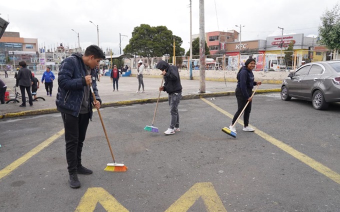El trabajo fue una labor conjunta: los vecinos aportaron con materiales, mientras que el Municipio de Riobamba contribuyó con personal de higiene para recolectar los desechos. Además, dos furgones de salud, con cinco médicos de la PUCE de Quito, brindaron atención a más de 50 personas en medicina general, fisioterapia, geriatría y gerontología.
