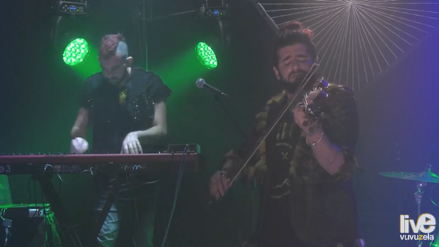 Mientras la banda actuaba, el público podía interactuar entre sí a través de un chat, donde dejaban sus impresiones y chascarrillos sobre una actuación que arrancó con el violinista tumbado en una alfombra haciendo filigranas, un poco al estilo Ara Malikian, y que se basó en la presentación del disco «Mundos opuestos» y en la interpretación de versiones de clásicos del pop como «She's a maniac», de la película «Flashdance» o «Don't stop me now» de Queen, con una decente solvencia técnica. Pero el líder del grupo se perdió en interminables «speeches» bastante incomprensibles, cosa que los próximos grupos deberían evitar, y la calidad sonora de la emisión fue manifiestamente mejorable (ayer sobre todo con el violín, el instrumento protagonista). Por momentos se percibía más el sonido ambiente (con sus ecos) que el de cada instrumento por separado, y también se notaron algunos ruiditos típicos de las conexiones online, así que sería conveniente mejorar ese apartado para el futuro.