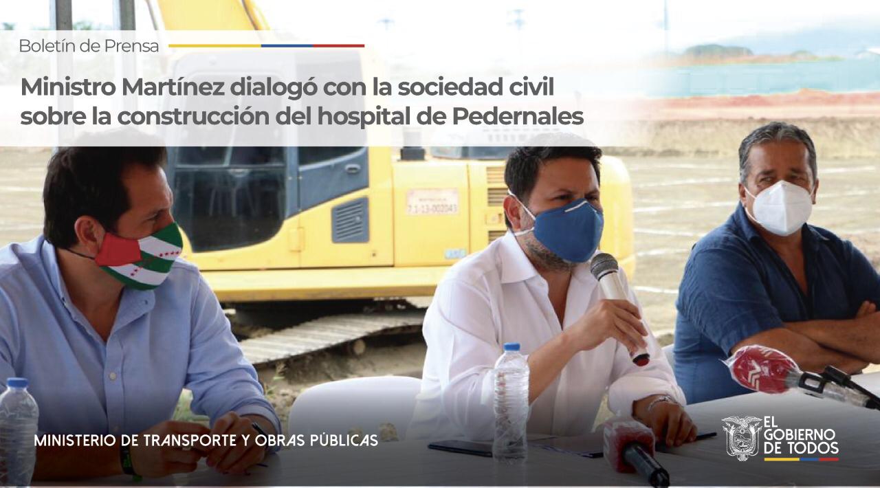El ministro de Transporte y Obras Públicas, Gabriel Martínez, como autoridad de la Secretaría Técnica del Comité de Reconstrucción, cumplió el 09 de junio de 2020 varias actividades en Pedernales, Manabí. Recorrió algunas de las obras en ejecución junto al Gobernador Tito Nilton Mendoza, el alcalde Eduardo Arcentales y representantes de los choferes profesionales del cantón.