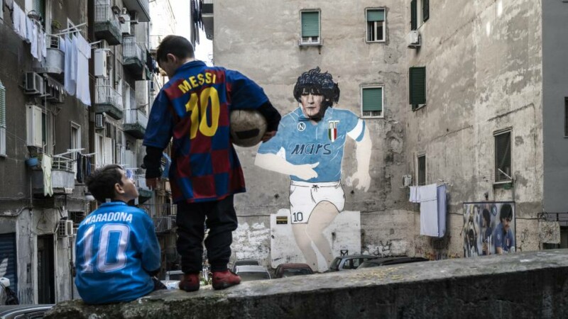 En lo que respecta al arte callejero sobre Maradona, parada obligada es Nápoles. La ciudad al sur de Italia es una pequeña meca de idolatría. La imagen más grande del mundo de el se encuentra en uno de los edificios del barrio San Giovanni Teduccio, también conocido como el Bronx de Nápoles. El autor de la obra, Jorit Agoch, explicó que “Para mí Diego representa al que siempre ha luchado por los derechos de la gente oprimida cerca del pueblo sudamericano. (…) Ha representado una figura de venganza, en frente a un sistema futbolístico corrupto” (TyC Sports, 27/11).
