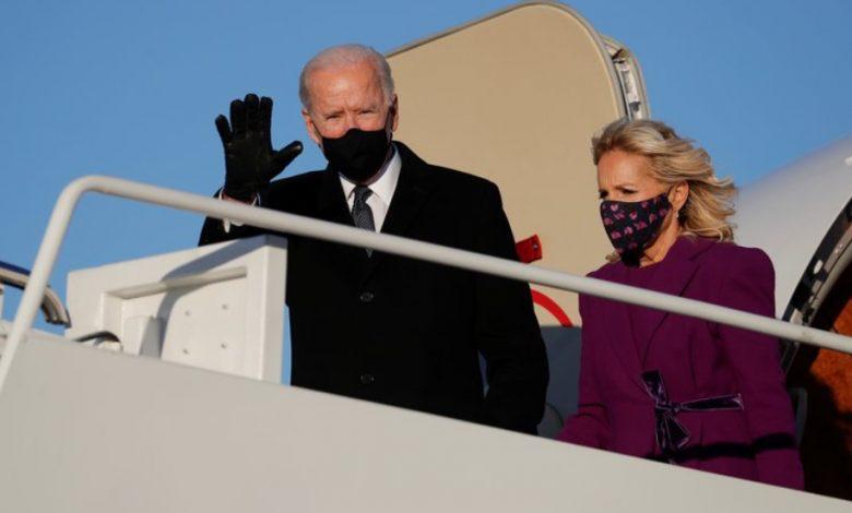El presidente electo de los Estados Unidos, Joe Biden, y su esposa Jill, aterrizaron el martes en la base militar de Andrews, cerca de Washington, de cara a su toma de posesión que se celebrará mañana.