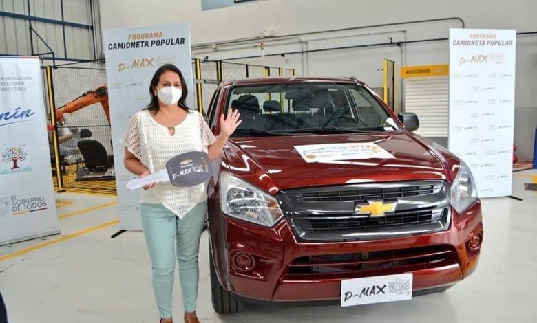 La entrega de las camionetas estuvo a cargo de Iván Ontaneda, ministro de Producción, Comercio Exterior, Inversiones y Pesca; y de representantes de Chevrolet, marca de los primeros vehículos entregados a beneficiarios que se dedican a la producción de cacao y arándanos, y al transporte de leche, según informó Ontaneda.