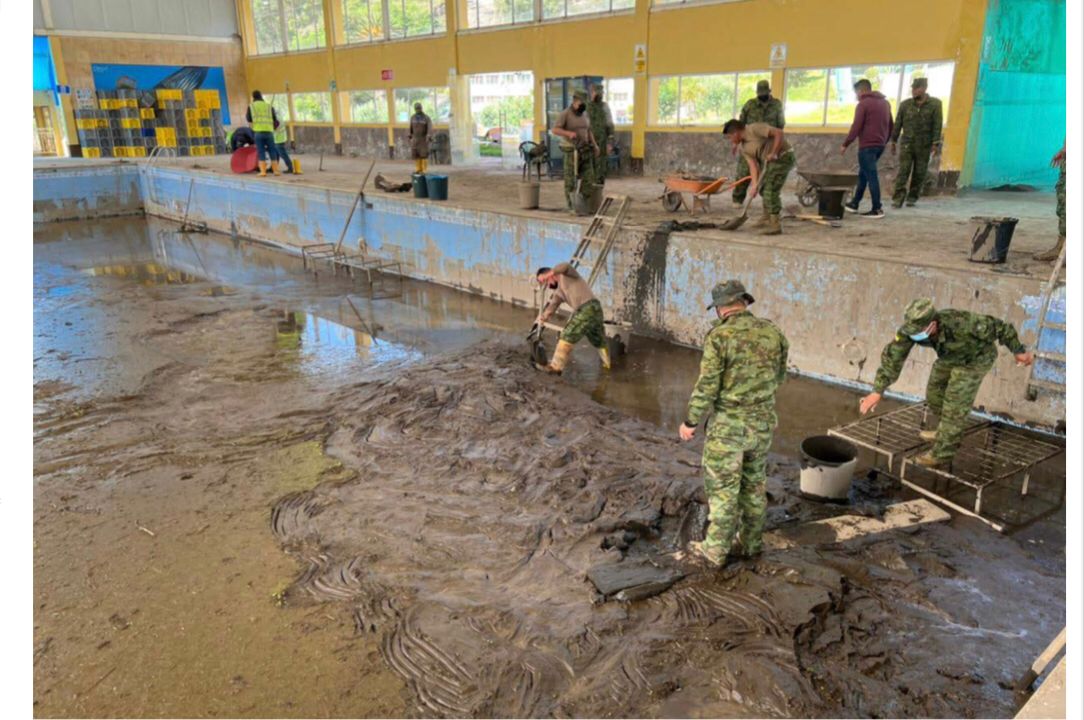 Las Fuerzas Armadas a través la Brigada de Caballería Blindada N.° 11 GALAPAGOS con efectivos del Grupo de Caballería Blindada N.° 31 Machala, cumpliendo con los protocolos de seguridad y bioseguridad en apoyo al GAD cantonal de Guano, participó en la minga de limpieza del Parque Acuático Los Elenes, con el fin de colaborar en las actividades comunitarias y el bienestar social.