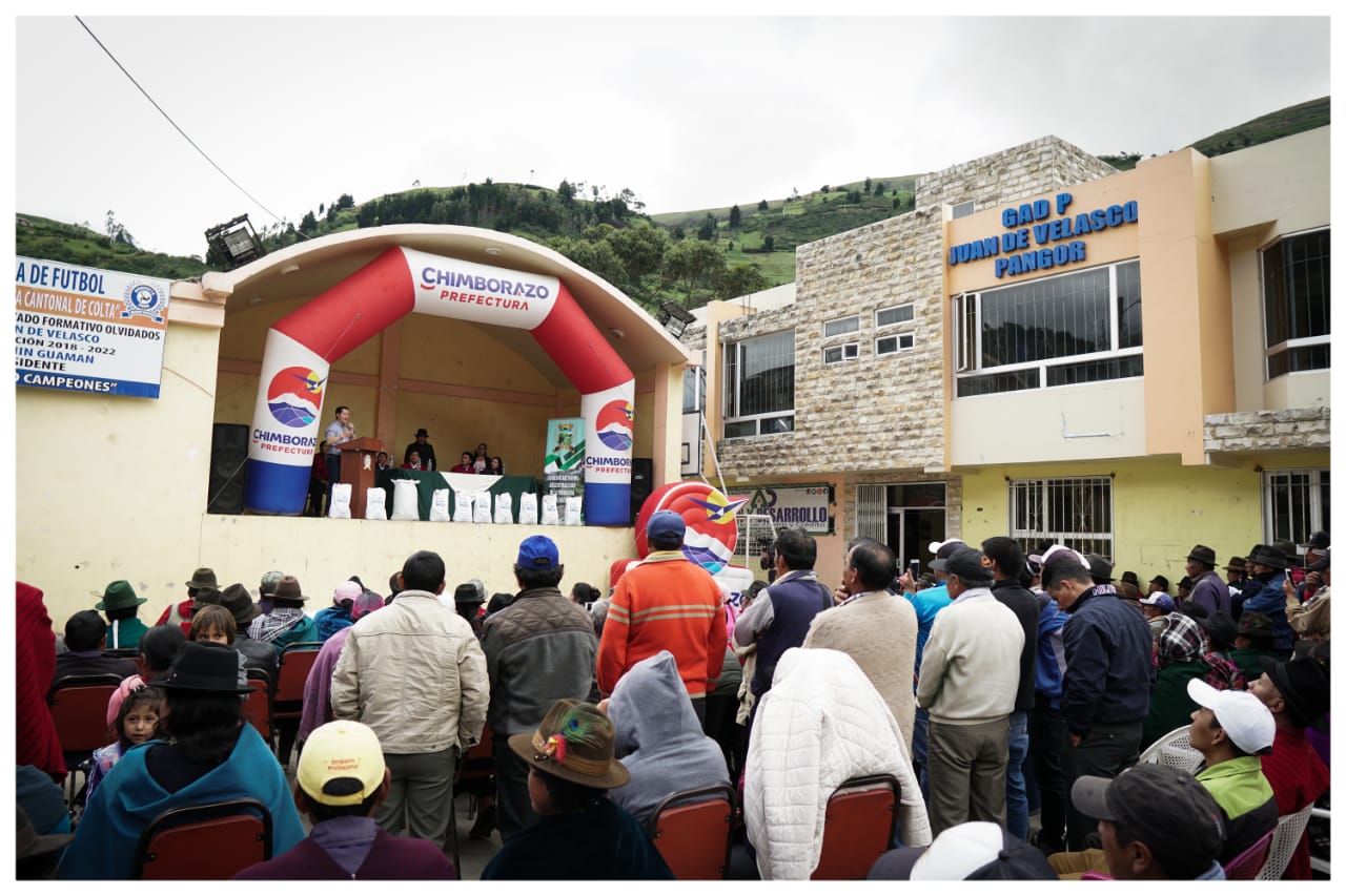 Juan Pablo Cruz, prefecto de Chimborazo entregó 36 mil alevines, balanceado y kits veterinarios en la parroquia Juan de Velasco (Pangor) del cantón Colta, beneficiando a 38 familias de las comunidades El Tablón, Centro Poblado, Tambillos y Rumipamba.