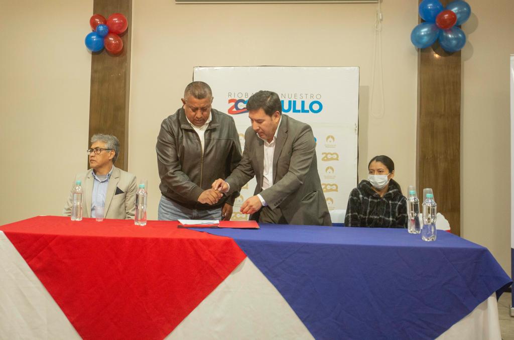 El Municipio de Riobamba iniciará la obra para la reconstrucción de la cancha del barrio Santa Rosa, así como el cambio del sistema de alcantarillado de este espacio además del mejoramiento del entorno de esta infraestructura barrial. Esta actividad se cristalizó gracias a la firma del contrato correspondiente al proyecto, actividad que se llevó a cabo durante la noche de este miércoles 15 de marzo de 2023, en la casa barrial de Santa Rosa.