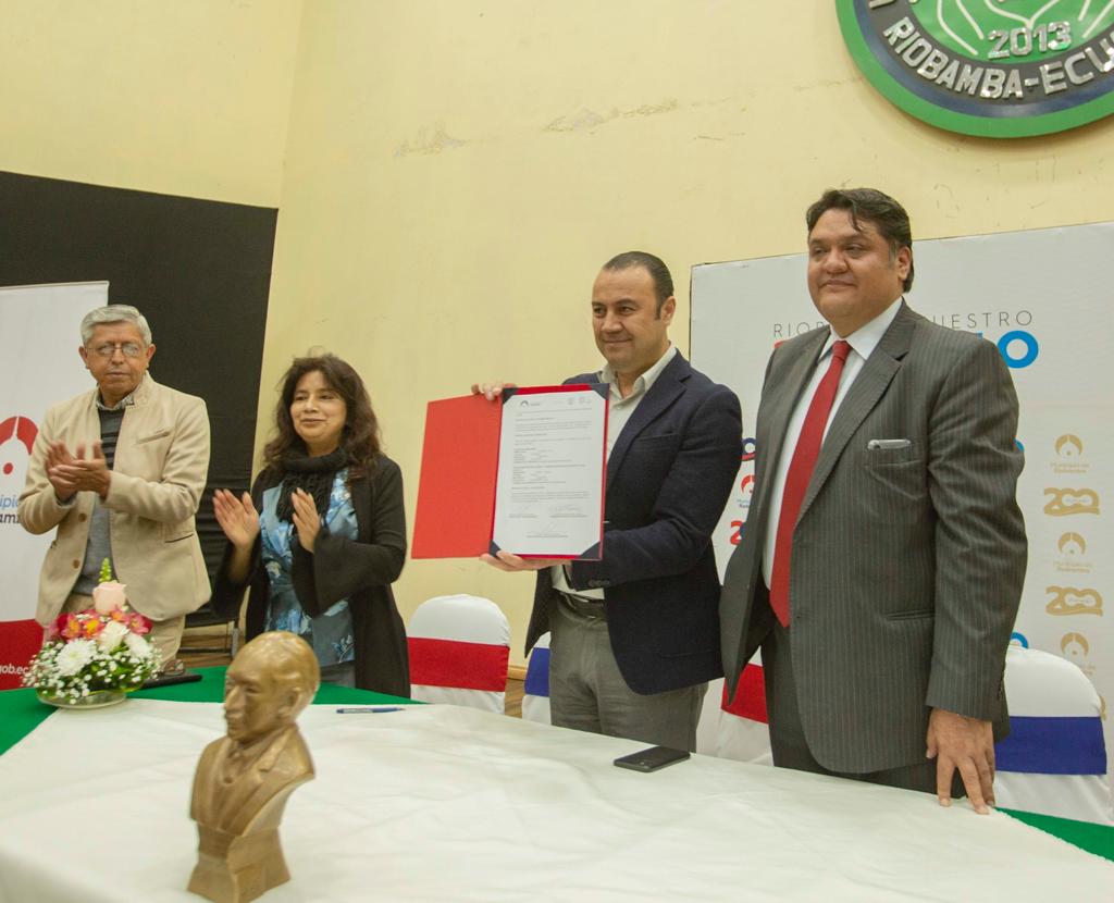 Este jueves 2 de febrero el Municipio de Riobamba suscribió un convenio de cooperación interinstitucional con el Ministerio de Educación para el mantenimiento y cambio de la cubierta del edificio patrimonial de la Unidad Educativa “Carlos Cisneros”.