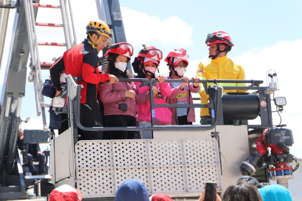 Entre risas, sorpresas y aprendizaje, 35 niños del campamento vacacional organizado por el ECU 9-1-1, visitaron la compañía del Cuerpo de Bomberos Riobamba (CBR) ubicado en el Parque Industrial, con el objetivo de conocer las actividades y el trabajo que realizan los uniformados a favor de la ciudadanía.