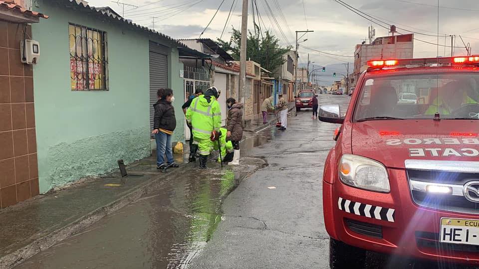 El jueves 27 de enero el personal del Cuerpo de Bomberos de Riobamba se desplegó a diversos puntos de la ciudad para colaborar con la evacuación de agua lluvia estancada.