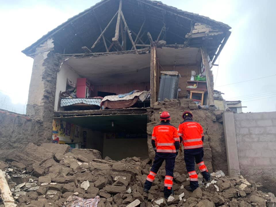 El equipo de rescate de la institución bomberil acudió este jueves 18 de febrero, al llamado de emergencia en la parroquia San Juan, donde una vivienda sufrió daños estructurales al derrumbarse una de las paredes de la casa.