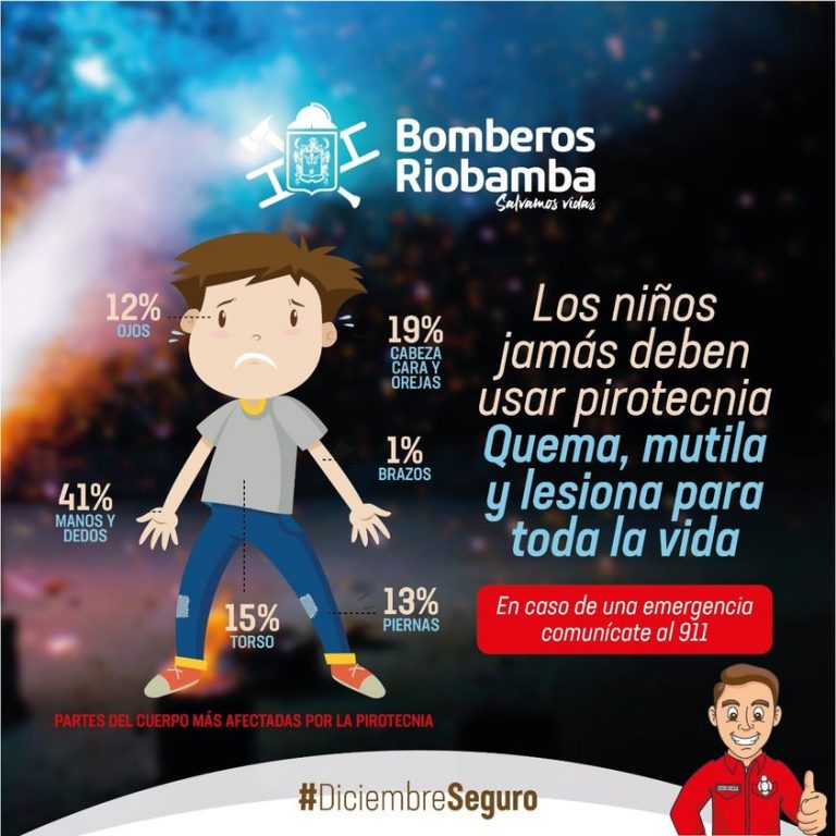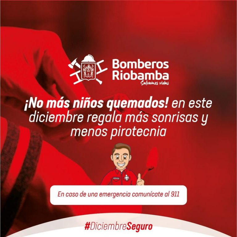 El Cuerpo de Bomberos de Riobamba, emprendió una campaña para evitar el uso de la pirotecnia y disfruta de unas fiestas en paz, recomienda que en estas celebraciones lo más importante es la unidad familiar.