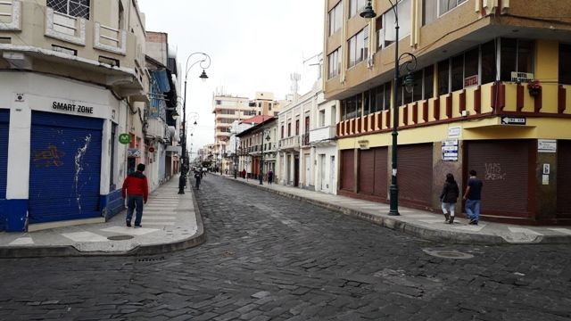 Desde que el presidente Lenín Moreno declaró el estado de excepción en el Ecuador la noche del lunes 16 de marzo del 2020, para contener la propagación del coronavirus covid-19 en el país, las principales calles y avenidas de Riobamba se encuentran desoladas, principalmente a partir de las 14h00, cuando inicia el toque de queda con el objetivo de que la gente permanezca en sus hogares y no se arriesguen a ser contagiados por el coronavirus.
