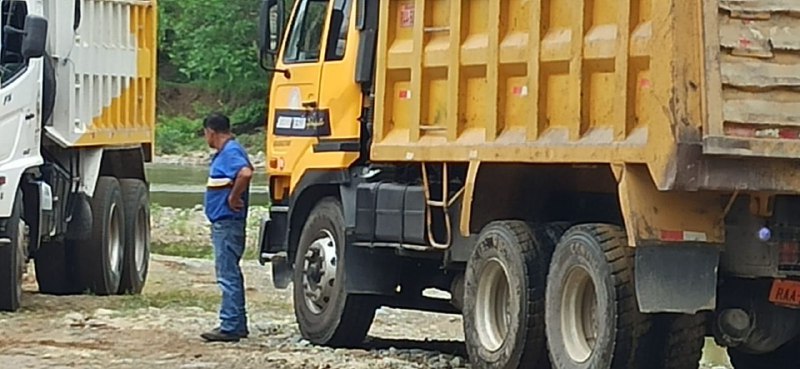 En el operativo realizado esta mañana fueron desalojados de las tierras de la hacienda, vehículos pesados identificados como propiedad de la Prefectura de Los Ríos, en los que se transportaba material pétreo, producto de la actividad minera sin permisos.