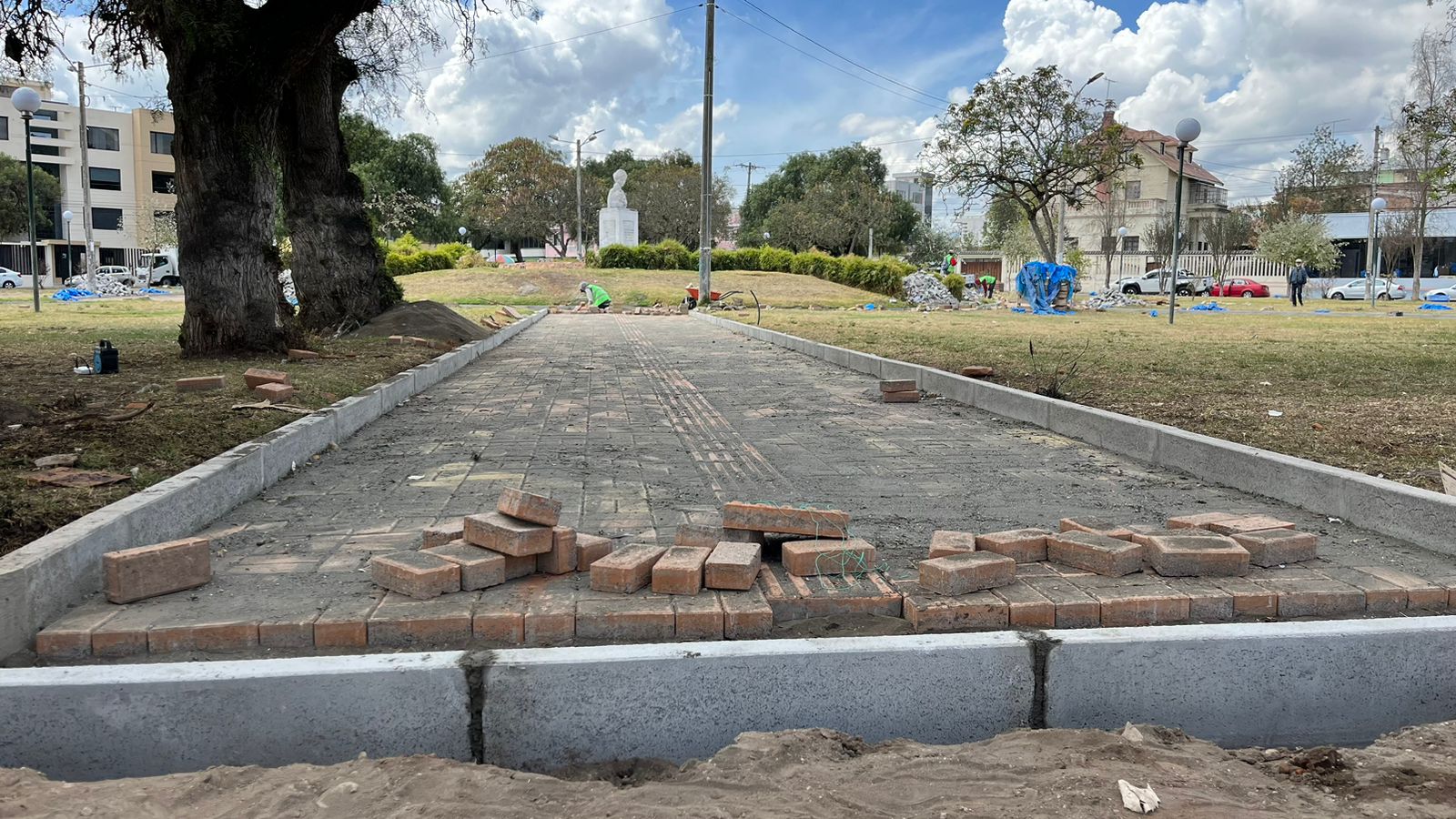 Actualmente, los esfuerzos se centran en la instalación de bordillos prefabricados en las áreas circundantes de las camineras. También se ha iniciado la colocación de subbase y adoquines holandeses de diversos colores en las mismas camineras. Los trabajos continúan con la fundición del contrapiso y la construcción de rampas de acceso especialmente diseñadas para personas con discapacidad. Además, se están instalando bancas metálicas y basureros para que los visitantes disfruten de un entorno limpio y acogedor. No menos importante, se han colocado ductos eléctricos que permitirán el soterramiento de cables eléctricos, de telefonía e internet en el futuro.
