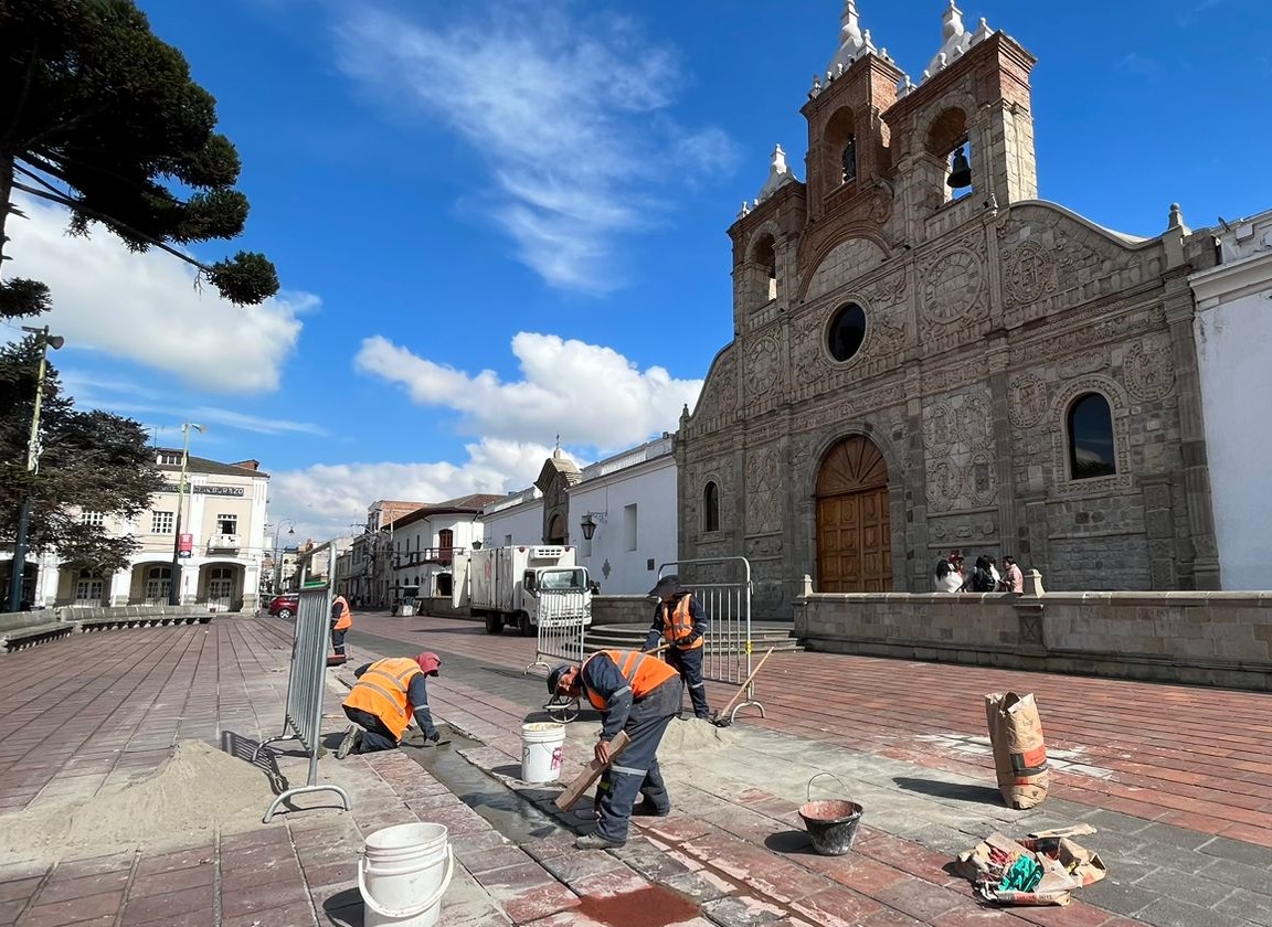 El Municipio de Riobamba está llevando a cabo trabajos de mantenimiento y mejoramiento de áreas verdes, parques y plazas con el objetivo de realzar el aspecto del centro histórico de la ciudad.